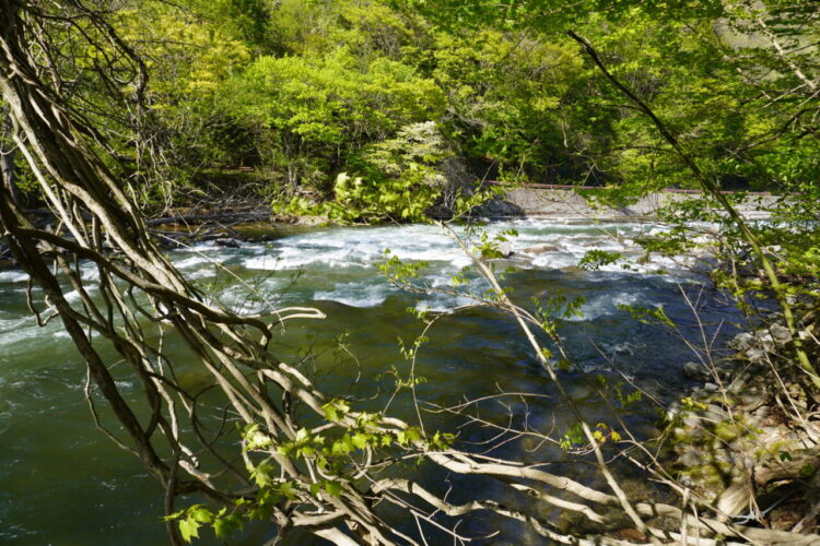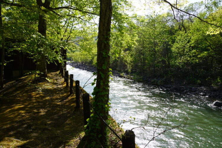 奥入瀬渓流の近くを散策します。