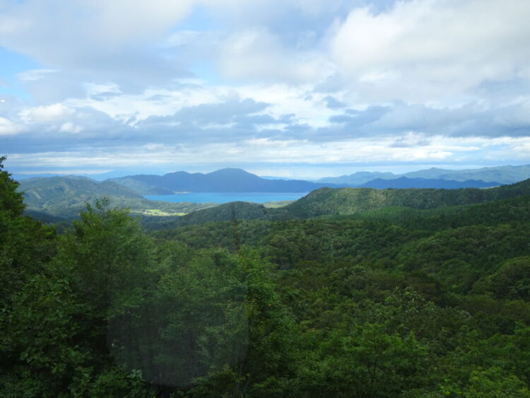 田沢湖と休暇村乳頭温泉郷の間のグランドホテル天空に宿泊し、田沢湖の眺望を楽しみました。