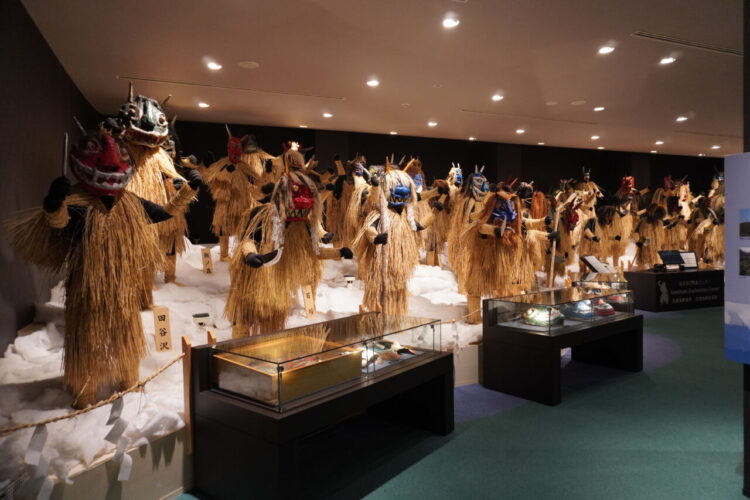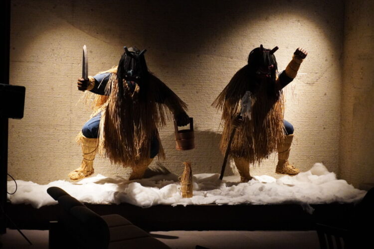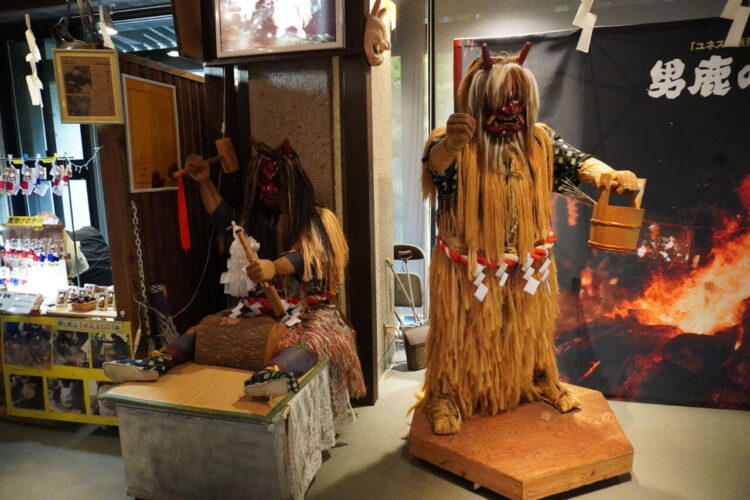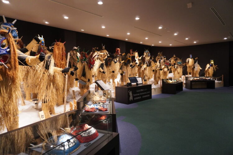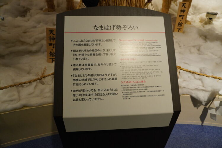 なまはげ館は、なまはげ伝承ホール(男鹿に生き続けるなまはげ行事の姿や、しきたり、伝承する人の精神がを描かれてます。)、神秘のホール、売店および、なまはげ勢ぞろい(男鹿市内各地で実際に使われていた150枚を超える多種多様なナマハゲ面が勢ぞろい。)からなっていました。