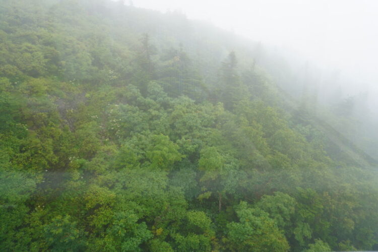5月に来た時は風速25mと強風のため、ロープウェイの運航は休止していたので、再度ロープウェイを乗りに訪れました。ただ、小雨で靄っていたので景色はほとんど見えませんでした。