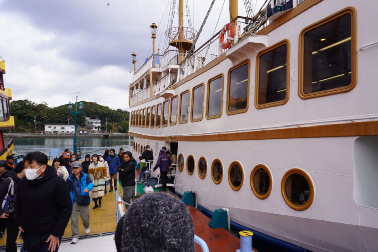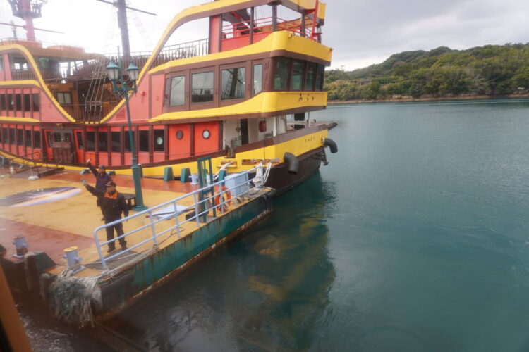 九十九島遊覧船パールクィーンは、広々とした船内で快適なクルーズが楽しめました。島の密度が日本一と言われ、208の島々が織りなす美しい自然景観を50分という時間をかけて回ります。松島の遊覧船を思い出しました。